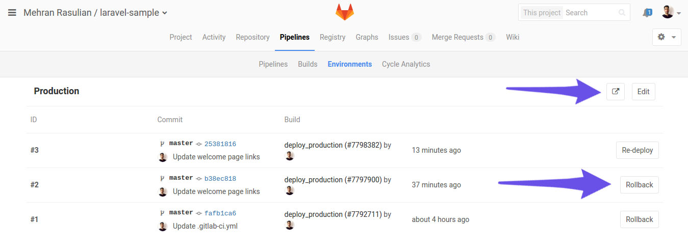 We configured GitLab CI to perform automated tests and used the method of Continuous Delivery to deploy to production a Laravel application with Envoy, directly from the codebase.