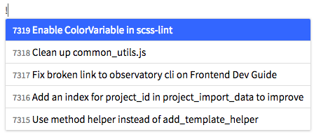 Referencing GitLab items depends on a symbol for each type of item. Typing that symbol will invoke a dropdown that allows you to search for and autocomplete the item you were looking for. References are shown as links in context, and hovering on them shows the full title or name of the item.