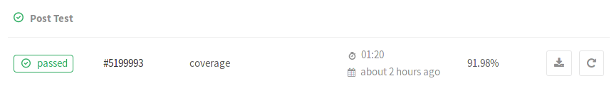 If the pipeline succeeds, the coverage is shown in the merge request widget and in the jobs table.